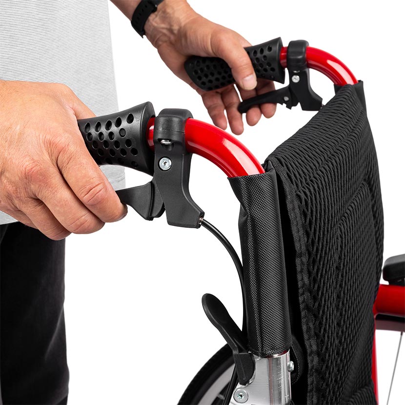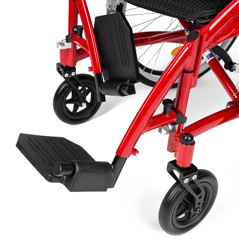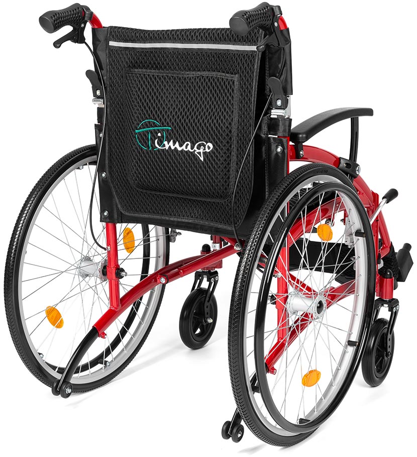 INVALIDNÍ VOZÍK TIMAGO PREMIUM v moderním červeno-černém designu a hliníkovém provedení je extrémně lehký, váží pouze 13,7 kg. Kromě exkluzivního vzhledu je i mimořádně bezpečný neboť je vybaven brzdou pro doprovodnou osobu. Je vybaven kolečky proti převrácení, díky nimž je velmi dobře ovladatelný a zajišťuje maximální bezpečnost uživatele. Vozík má odnímatelné, vzdušné čalounění, díky kterému je snadné jej udržovat v čistotě, a výrazně zvyšuje komfort používání.