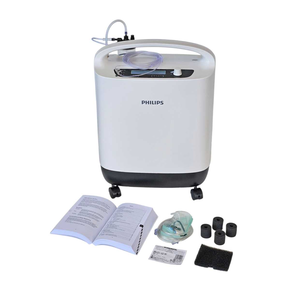 GENERÁTOR KYSLÍKU PHILIPS, nástupce léty prověřeného a oblíbeného koncentrátoru EVERFLO. Výrobce garantuje 93% (± 3 %) kyslíku při průtoku 0,5–5 L/min. Zařízení PHILIPS doporučujeme pro lázeňskou péči, domovy důchodců, zdravotní centra a samozřejmě domácí používání pro osoby, které nemohou být bez kyslíku. Generátor PHILIPS má zabudované počítadlo provozních hodin. Součástí dodávky je zvlhčovač (lahvička), kyslíkové brýle (ASID BONZ), maska EcoLite, náhradní filtry a multijazyčný manuál, jehož součástí je český návod. Dle nové směrnice MDR se jedná o zdravotnický prostředek třídy II.a. Rozměry přístroje: 60 × 42 × 18 cm, hmotnost: 18 kg.